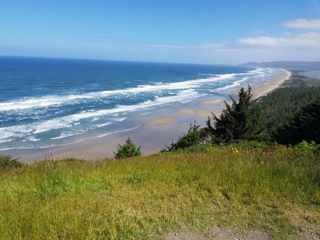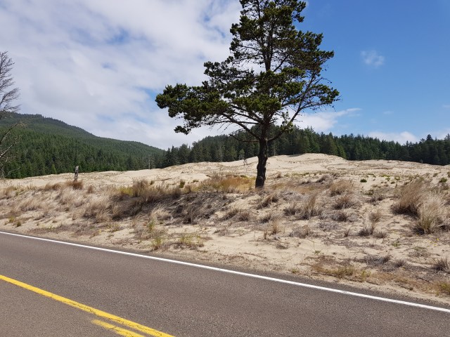 Met a young couple riding the Pacific coast. Had a great chat and they gave us some pointers. During lunch in Pacific City we met Chuck and Kathie, a lovely couple with whom we had a nice conversation. At that restaurant we accidentally ordered the largest ‘large’ pizza we have ever seen. Together we ate about a third and couldn’t eat any more.