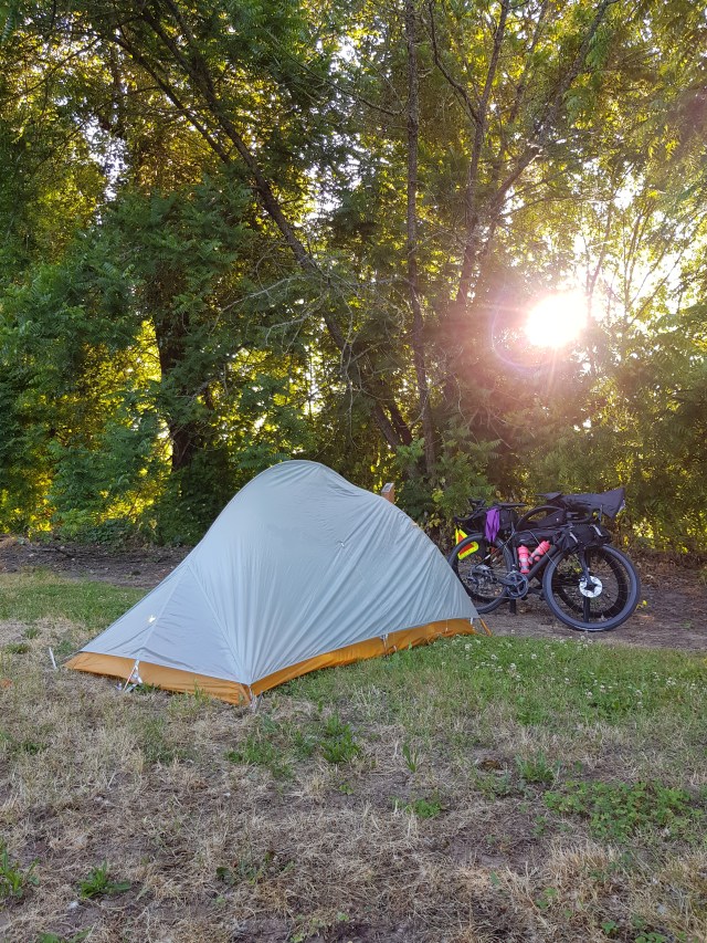Rode for a long time partly because of poor planning. Didn’t realize how far it was to the next place to sleep and when we arrived all rooms were booked. Went to the fire station which we had heard was sometimes a good option on a time of crisis. The firefighters were super nice, asked us all about our trip and gave us good directions to a great camping area.