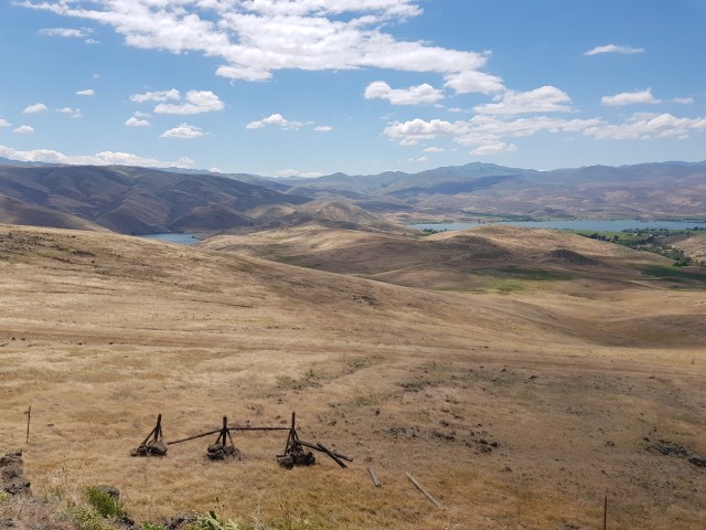 Early in the day the landscape reminded us of Iceland. Barren hills, no trees and low vegetation such as bushes and gras. Horses and cattle grazing.