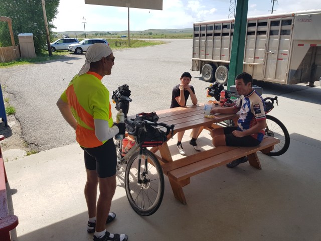 We recently got an explanation about the less than friendly attitude we experienced in Montana. Apparantly the old time cowboys recent the number of rich people from the west coast buying real estate in their state and they fear that their culture is under attack. Our cycling clothes are probably not what hardcore cowboys would like to see in their home towns.