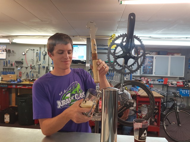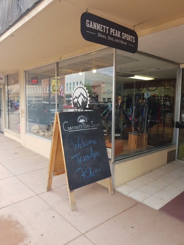 When we arrived in Lander we went to the bike shop which gives TransAm riders free ice cream and beer. What a wonderful way to greet people! We had them clean our chains and cassettes.