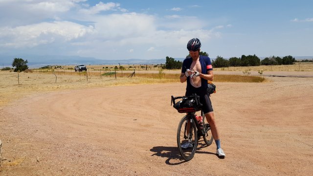 Congrats for making it through the high country! Having recently completed our XC trip with a similar bikepacking setup I’m wondering where your sleeping bags, tent, and pads are stored. I thought we had a slim setup with similar size seat bags but also full frame bags and 20 liter dry packs in the front to store our camping gear. Looking at the pics from today did you ship your camping gear? Otherwise I want to know the trick to that super efficient setup! Friday looks like a chance for afternoon clouds on the eastern plains. I hope you get that break from the sun!