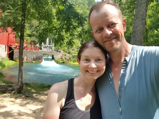 After our soda we headed off but didn’t go far until we had a chat with a older man that thought what we were doing was very exiting and the fact that we are from Iceland really interesting for him 🙂 he told us to look for Alley Spring on our way. There we could look at an old mill and maybe cool down in the river. Of course we did as we were told 😁 The mill was beautiful and cooling of in the river was the greatest.
