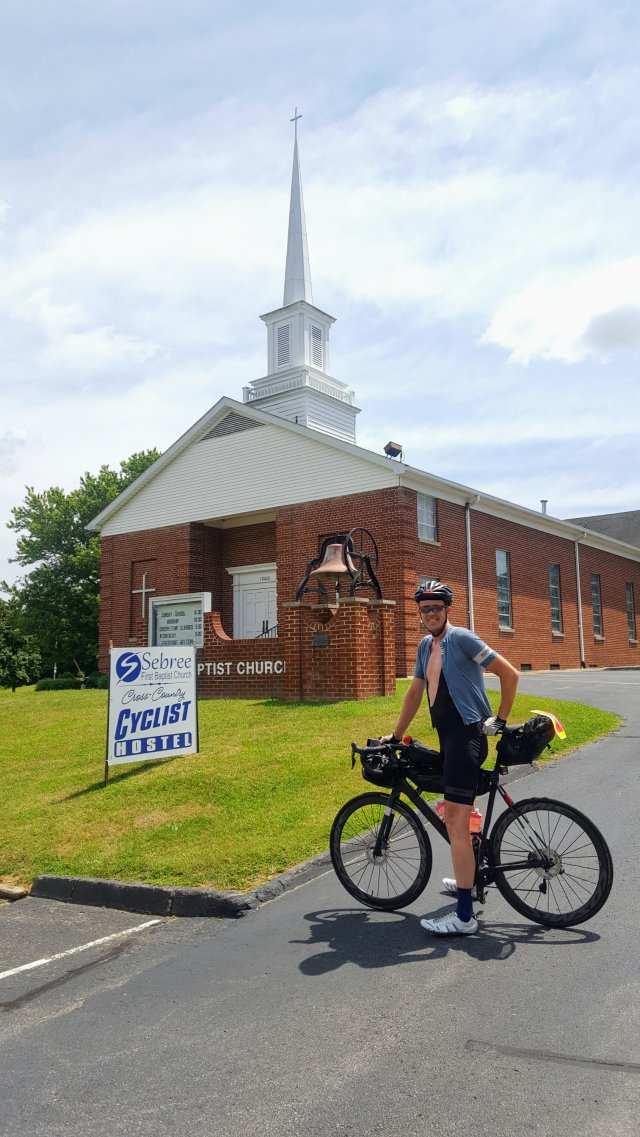 Yesterday we ended up sleeping on the floor at Marion United Methodist church. This church has offered TransAm cyclists to sleep and use their facilities at least since 2008. At the church we met another cyclist from New York heading west. The church takes a picture of every rider and asks each one to sign a guestbook and glues the photo next to it. It was pretty nice looking through it. We think this is a really lovely way to use the the church’s buildings for good. Something that could work very well in Iceland for touring cyclists riding the ring road πŸ™‚