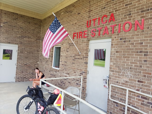 Even though the day was nice we were not at our best and after looking at the maps for the next coming days we decided to finish early in the small town of Utica witch has one gas station and a Dollar General store for its 400 residents. Our accommodation was at the fine facility that the amazing fire department offers to cyclists for free. They leave everything open and ask for nothing in return. We can even walk around and look at their gear, such amazing trust they give to strangers. If we could all treat each other this way we think the world would soon be a much nicer and safer place for everyone πŸ’ž